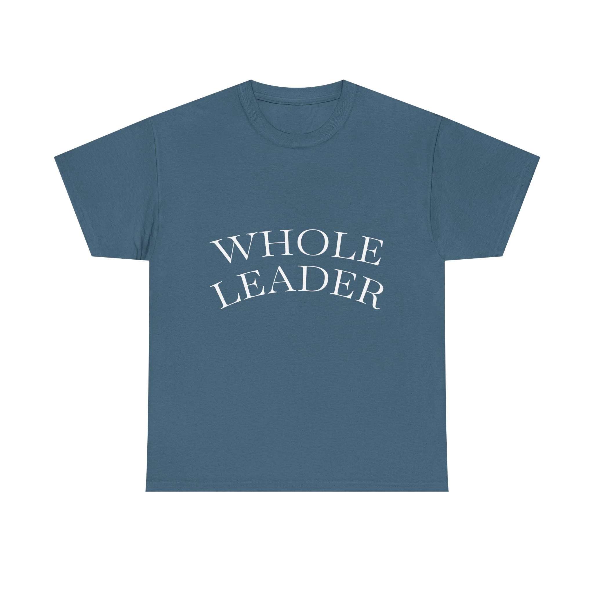 This relaxed-fit cotton tee carries a clear, confident message — made for people who lead with intention and thoughtfulness, aligning words and actions in their life and work. On the front, soft arched lettering reads “WHOLE LEADER" and the back features the Healthy Messages logo. Wear it to meetings, events, or during easy weekends when you want clothing that reflects your personal and professional values. The muted blue canvas and warm tan emblem create an earthy palette that pairs easily with denim or neutral layers, making the tee an easy way to communicate what you stand for.
